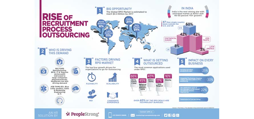 The top players in the RPO industry include PeopleStrong, Futurestep, Pontoon Solutions, Agile 1, AGS, Randstad, Kelly OCG, HirePro, Elixir RPO, Flexabilitly RPO and Team Lease. Thanks to the growing competition, the service providers are forced to stay on par with the best practices, tools and techniques and also offer value added recruitment services such as talent communities and employer branding to attract the companies.
