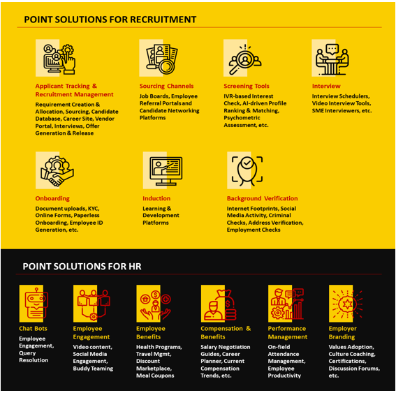 Here’s an illustration of the various point solutions available in the market that are digitising key recruitment and HR processes worldwide.